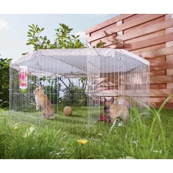 Das Freigehege ist für ein bis zwei Tiere geeignet. Durch den leichten Auf- und Abbau können Sie das AniOne Freilaufgehege ganz individuell in Ihrem Garten aufstellen und Ihrem kleinen Liebling eine Freude bereiten.