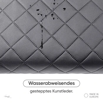 Die faltbare Outdoor Hundematte kommt in edlem, gestepptem, Kunstleder daher. Ausgefaltet bietet die Reisematte eine kuschelige Liegefläche. Gefüttert ist die Hundematte für unterwegs mit einem leichten, herausnehmbaren Kissen. Das Material ist OEKO TEX zertifiziert, super pflegeleicht und waschbar. Die Hundematte in der Größe Medium bietet ausgebreitet eine Liegefläche von 75x60cm, in der Größe Large 95x70cm.