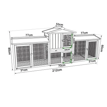 - SCHUTZ & BESCHÄFTIGUNG IN EINEM. Dieser Kaninchenstall mit 2 Etagen und großzügiger Auslauffläche dient als Spielgehege und überdachter Stall für Ihre Kleintiere im Außenbereich. 4 Türen garantieren optimale Erreichbarkeit.