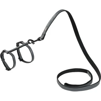 Durch den praktischen Klickverschluss lässt sich das Geschirr schnell und einfach anlegen. Die Leine liegt gut in der Hand und kann über den Karabiner verbunden werden.